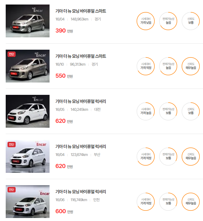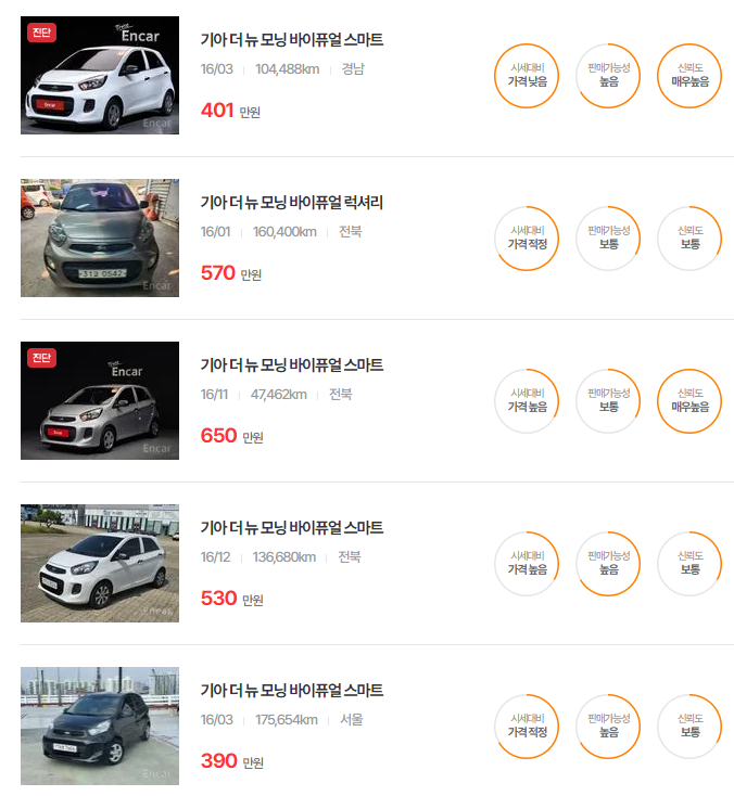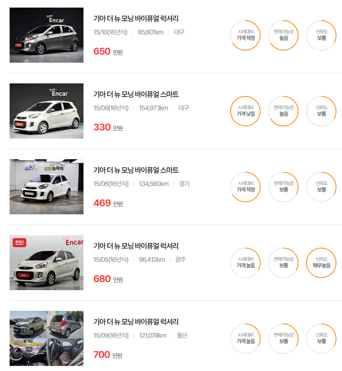 먼저, 2025 모닝 바이퓨얼 중고차의 연식별 시세에 대해 알아보겠습니다.