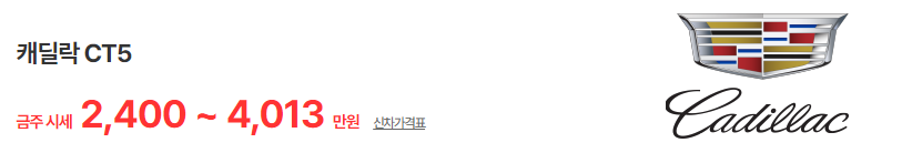 캐딜락 CT5 중고차 가격 시세표 | 2025년 6월 기준