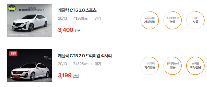 2022년식 캐딜락 CT5는 비교적 최근의 모델로, 최신 사양을 갖추고 있어 특히 인기를 끌고 있습니다. 트림에 따라 초기 모델보다 약간 높은 가격대지만, 가성비 있는 선택을 할 수 있습니다.