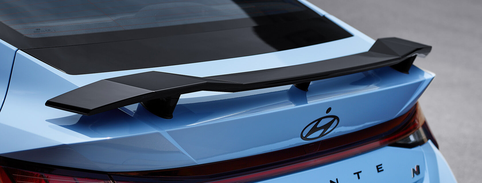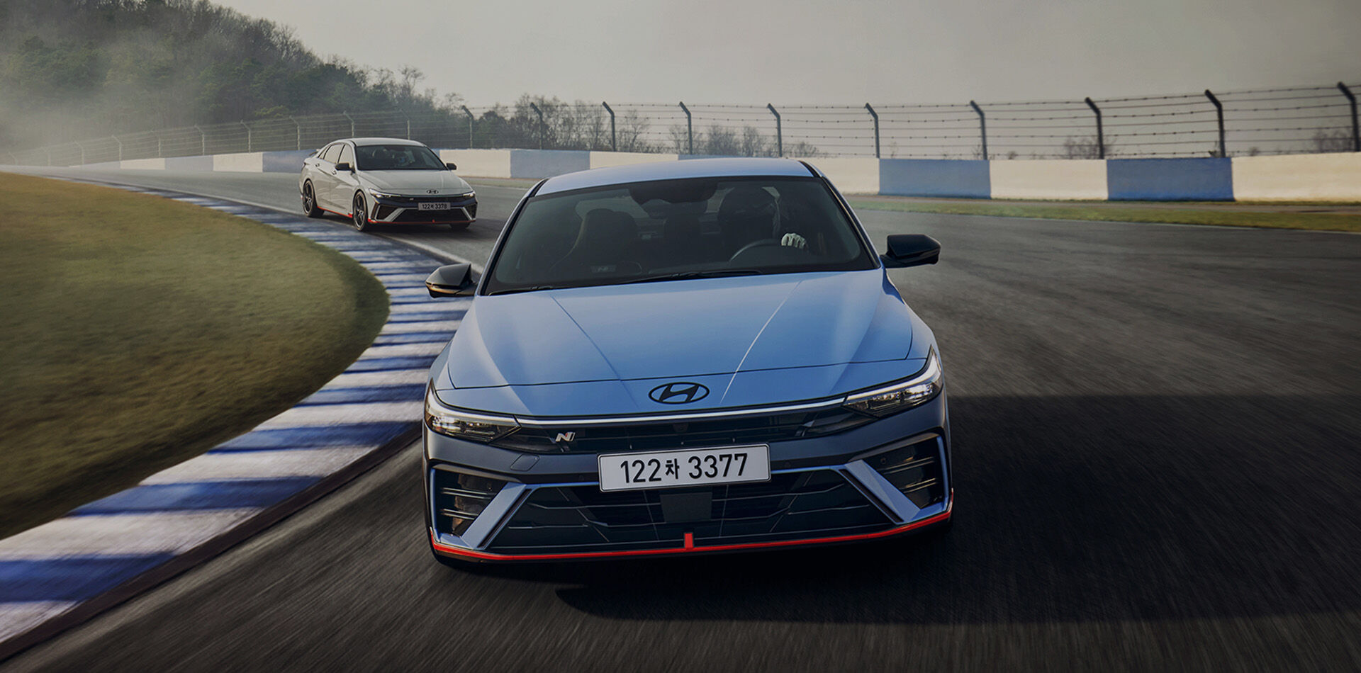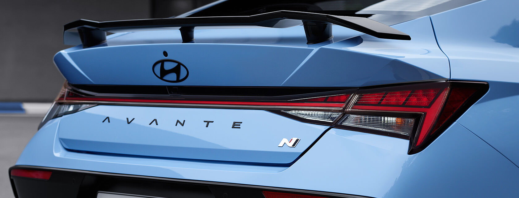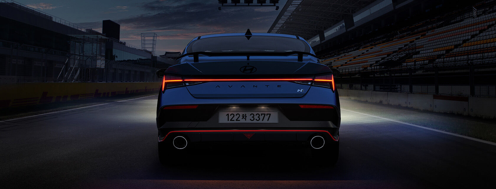더 뉴 아반떼 N은 현대적이면서도 스포티한 디자인이 특징입니다. 날렵한 라인과 공격적인 전면부가 스포츠카의 느낌을 강조합니다.