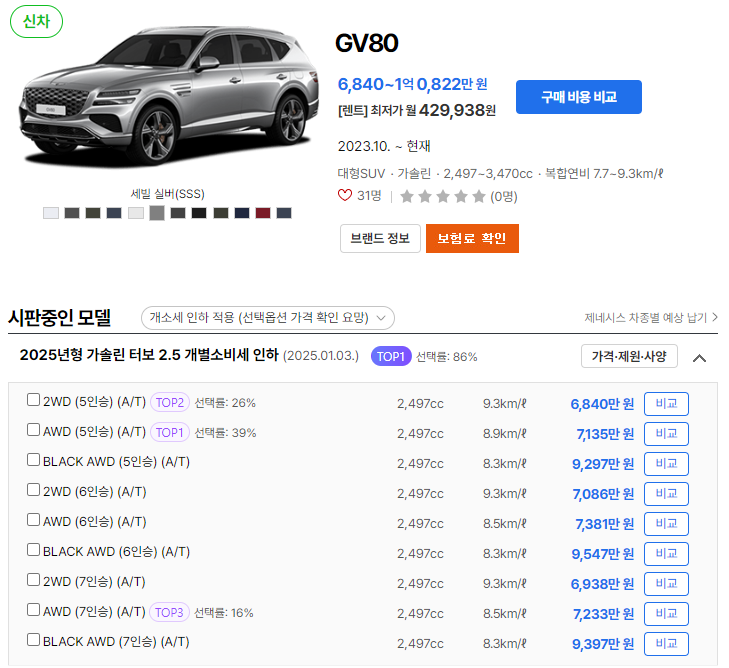 2025 제네시스 GV80 유지비