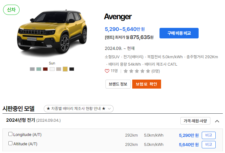 2025 지프 어벤저 유지비