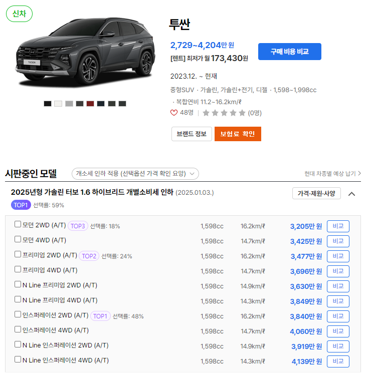 👇👇👇 투싼 하이브리드 가격표, 카탈로그 다운로드 👇👇👇