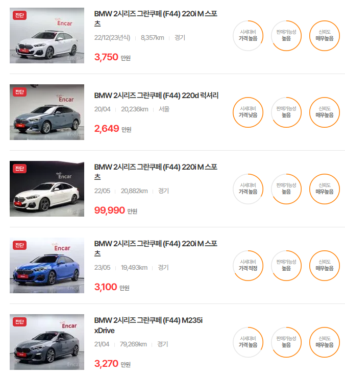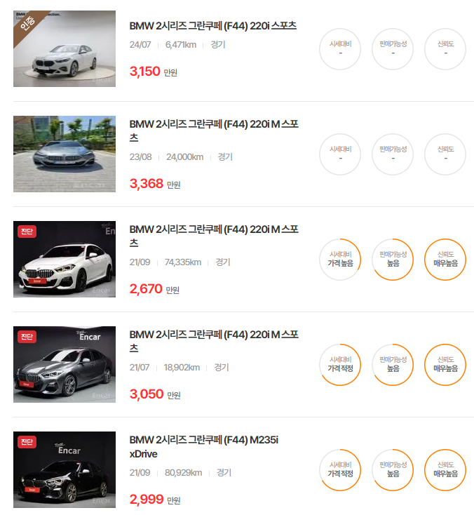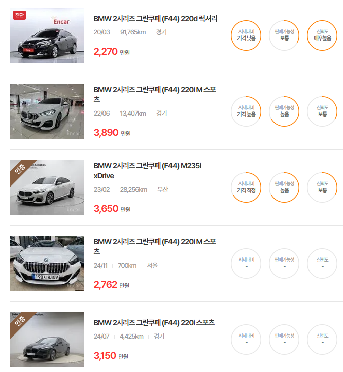 BMW 2 시리즈 그란쿠페 중고차 가격
