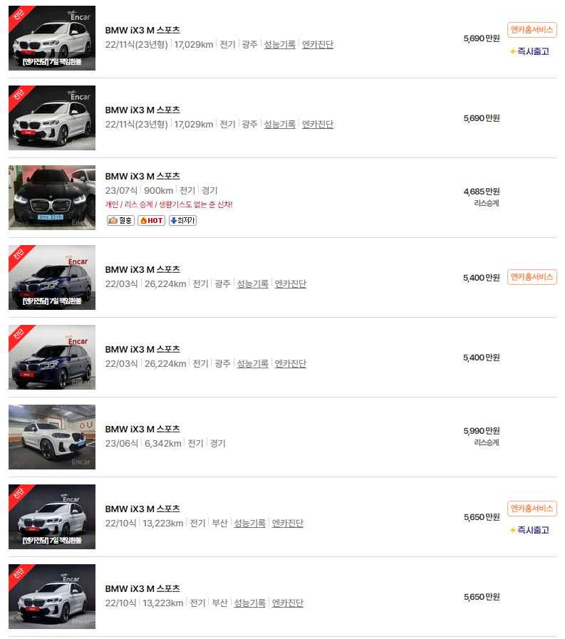 - 엔카: 다양한 브랜드와 모델의 중고차 정보를 실시간으로 제공합니다.