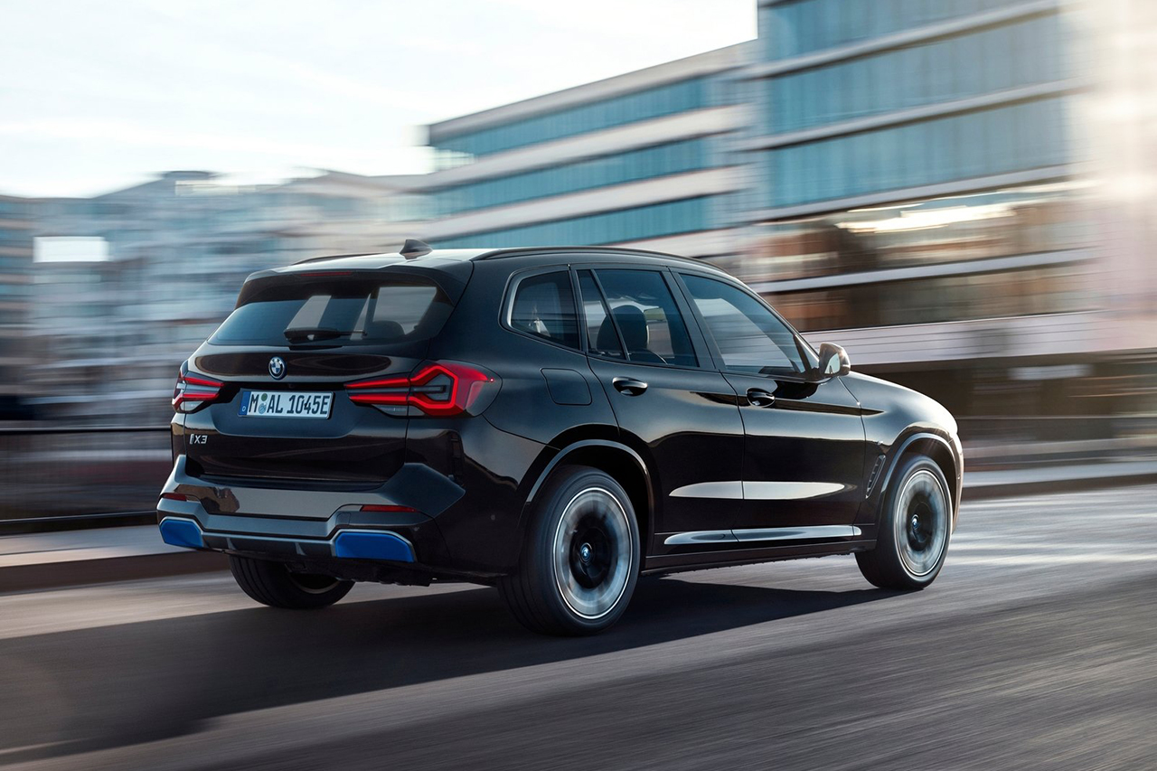 BMW iX3는 세련된 최신 디자인과 함께 공기역학적 요소를 강조하여 주행 효율을 극대화합니다.