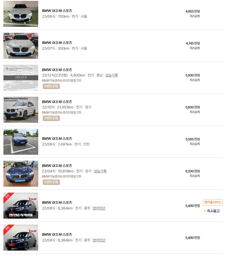 이 글이 BMW iX3 중고차를 고려하시는 데 도움이 되었길 바랍니다. 중고차 가격, 연식별 시세, 차량 유지비 정보를 토대로 현명한 선택을 하시기 바랍니다.